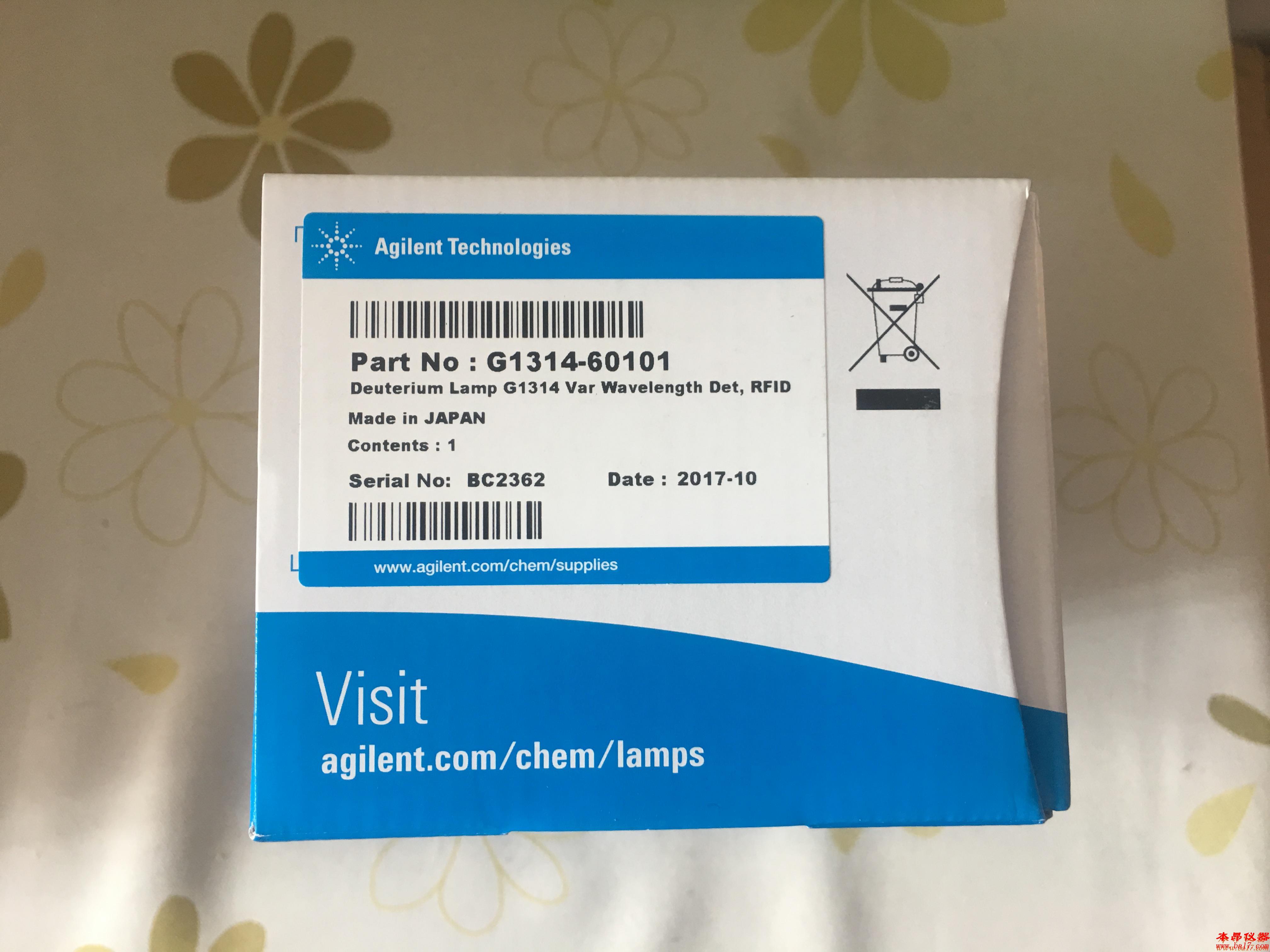 安捷倫氘燈G1314-60100,適用于用于G1314A/B/C和1120/1220 Infinity LC檢測器,紫外檢測器氘燈 VWD 1000小時